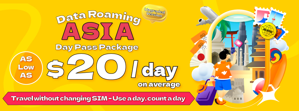 Pre-puchase Data Roaming DayPass Package, worry-free roaming starting from $20/day Valid in over 170 countries, daily usage deducted per day used, unused days can be carried forward. Flexible and convenient. Enjoy the freedom of roaming now!