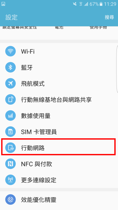 設定 → 行動網絡 → 存取點名稱 → 新增 |